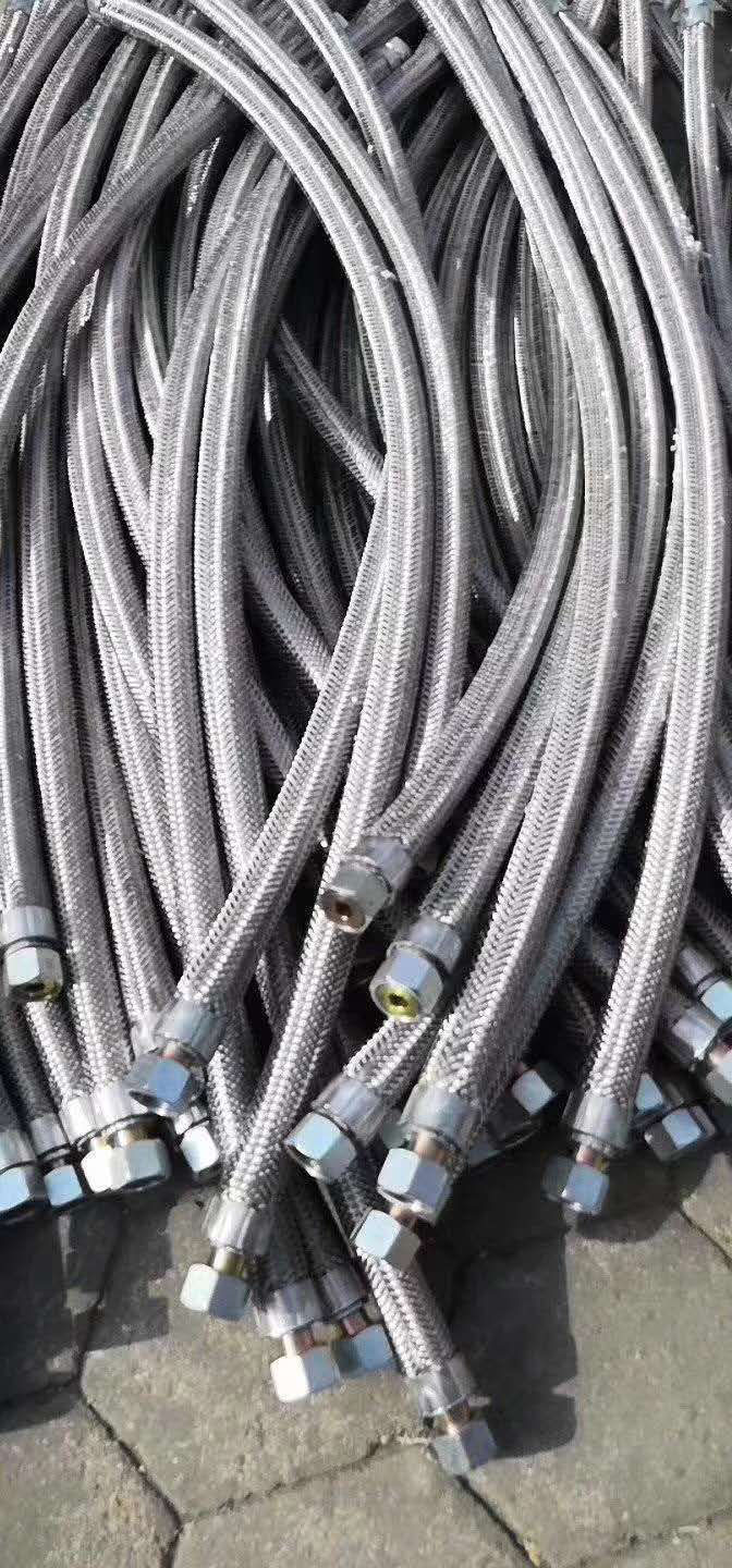 軟管(guǎn)大量滲油但未發現破裂,其原因(yīn)是軟管內通過高壓液流時,內膠被衝蝕、擦傷,直至(zhì)大麵積漏出鋼絲層導致大(dà)量滲油。